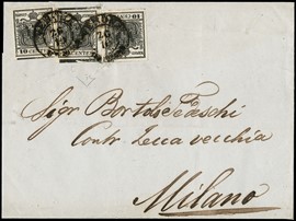 1850 - 10c nero, ST3 da 'MILANO 23/11, 9-10A' (C4), 1850