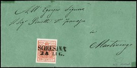 1850 - 15c rosso salmone intenso su lettera verde da 'SORESINA 24 LUG.' 1854 a Martinengo. CF Ferchenbauer (Sassone [..]
