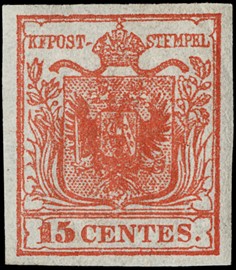 1850 - 15c rosso carminio I tir. da 'VERONA 2/6' (, 1850