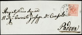 1850 - 5c arancio carico su circolare da 'PADOVA 17/9' (1857) per citta'. Firme Fiecchi, Sorani e A.Diena (Sassone [..]