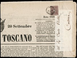 1860 - 1c bruno lilla su giornale 'MONITORE TOSCAN, 1860