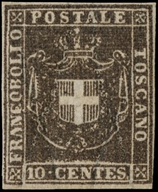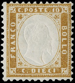 1862 - 10c bistro giallastro con doppia dentellatura. Qualche dente arrotondato, comunque molto fresco e raro. [..]