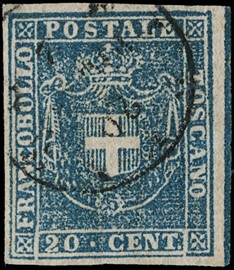 1862 - Regno d'Italia 20c indaco con Sardegna IV e, 1862