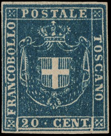 1862 - 20c indaco con riflessi violacei e Sardegna, 1862