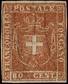 1860 - 80c carnicino, usato con grandi margini bia, 1860