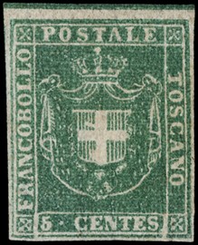1860 - 5c verde con grandi margini bianchi, annull, 1860