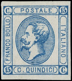 1863 - 15c azzurro litografico I tipo con gomma 'craquele'', SL. CF Sorani e Manzoni (Sassone 12 - Euro 3.000)