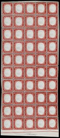 1862 - 80c giallo arancio, foglio completo di 50 esemplari. Raro, CF E.Diena (Sassone 4 - Euro 16.650+)