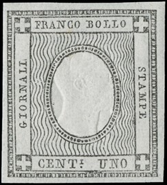 1863 - 1c verde grigio chiaro, DLR Londra, non dentellato e ben marginato, usato a Bologna. Raro, pochi esemplari [..]