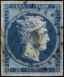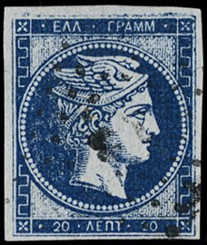 1861 - Grandi teste di Hermes, 20 lepta blu intens, 1861