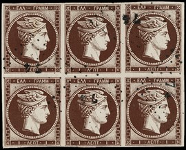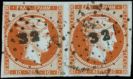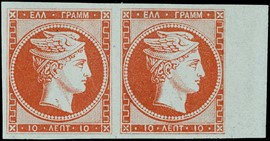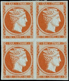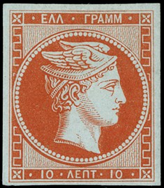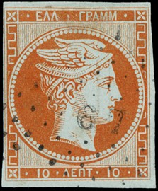1861 - Grandi teste di Hermes, 10 lepta arancio su, 1861