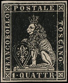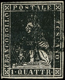 1857 - II emissione, 1q nero con margini bianchi, perfetto. Sigla Sorani, CF Raybaudi (Sassone 10 - Euro 1.350) [..]