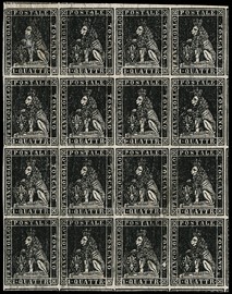 1857 - II emissione, 1q nero, blocco di sedici, nu, 1857