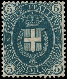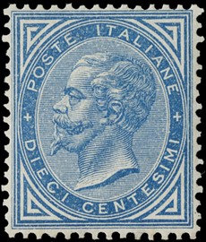 1877 - 10c azzurro, colori cambiati, ottima centratura. Freschissimo, molto raro in queste condizioni. Sigle A.Diena [..]