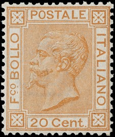 1877 - 20c ocra arancio, ottima centratura, SL. Si, 1877