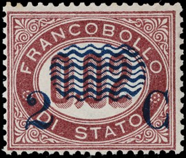 1878 - Servizi soprastampati, 2c su 0,20 lacca con, 1866