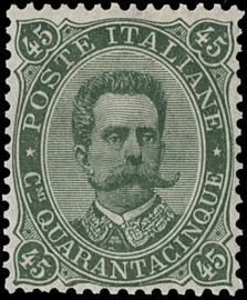 1889 - Umberto, 45c verde oliva, ottima centratura. Sigla E.Diena, CF A.Diena (Sassone 46 - Euro 12.000)