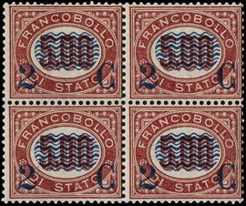 1878 - Servizi soprastampati, 2c su 5L lacca scuro, 1878