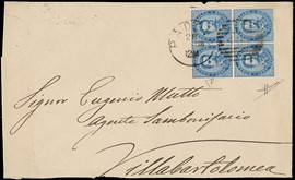 1879 - Umberto 25c azzurro, BL4 annullato con numerale a sbarre '437' da 'PADOVA 28 AGO 85' a Villabartolomea. [..]