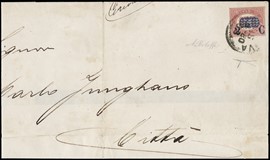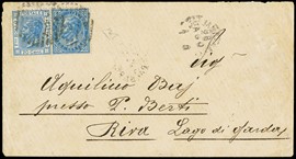 1867 - 40c rosso carminio, DLR Torino, e 20c azzurro annullati con numerale a punti '196' da 'VENEZIA' 18 maggio [..]
