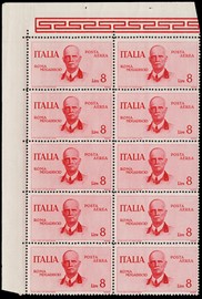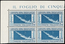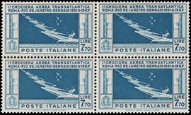 1933 - Crociera Nord Atlantica trittico 'SERVIZIO DI STATO', BL4 AdF inferiore e ben centrato. CF Giulio Bolaffi [..]