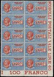 1922 - Espressi, 1,20L azzurro e rosso non emesso, BL10 AdF, ottima centratura (Sassone E8 - Euro 8.000/24.000+ [..]