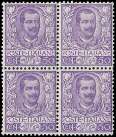 1929 - Floreale, 50c malva BL4 SL, buona/ottima ce, 1901