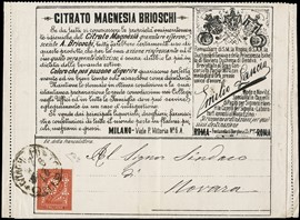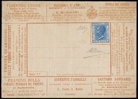 1889 - Umberto 20c arancio perforato 'CC' su cartolina di pubblicita' nuova, rarissima e in condizioni eccezionali. [..]