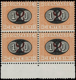 1890 - Mascherine, la serie di tre valori in BL4. 10c su 2c tutti SL; 20c su 1c e 30c su 2c i due superiori TL [..]