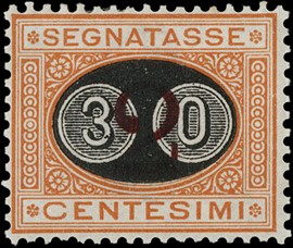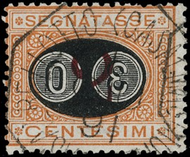 1890 - Mascherine, 30c su 2c ocra e carminio con s, 1890/91