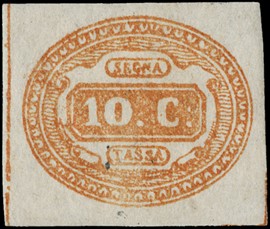 1874 - 10c ocra arancio 'ANNULLATO' due volte su p, 1874