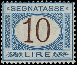 1874 - 10L azzurro e bruno, buona/ottima centratura. Molto raro in queste condizioni. Sigla A.Diena, CF Manzoni [..]