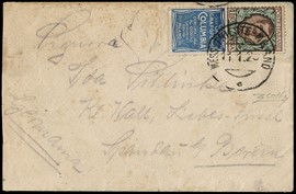 1924/25 - Pubblicitari, 1L bruno verde e oltremare 'Columbia' da 'MESSAGGERIE TRIESTE MILANO 11.1.25' a Berlino. [..]