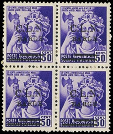 1945 - CLN-Barge: Monumenti Distrutti 50c violetto senza filigrana, BL4 soprastampato. Firme Savarese e Oliva, [..]