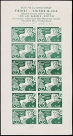 1945 - S.A.B.E. la serie di tre valori in minifogli da 12 esemplari SL. Qualche minima imperfezione di gomma. [..]