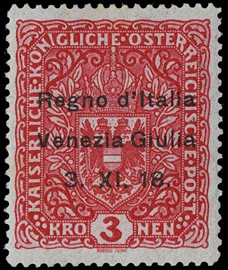 1918 - Venezia Giulia: 3kr rosa carminio, carta se, 1918