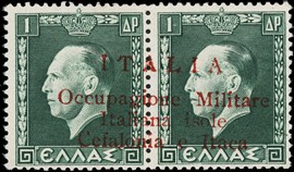 1941 - Cefalonia e Itaca, emissione di Argostoli, soprastampa a macchina, Giorgio II 1+1d verde, coppia SL con [..]