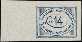 1944 - Pacchi postali d'Italia del 1927/32 soprastampati, la serie completa di dodici valori. CF E.Diena (Sassone [..]