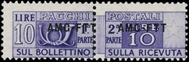 1949 - Pacchi Postali, 10L violetto con soprastampa modificata, 5,5mm invece di 11mm. Tiratura 400 esemplari. [..]