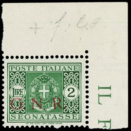 1944 - GNR Brescia, Segnatasse 2L verde AdF (pos.1, 1943