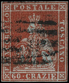 1851 - 60cr scarlatto cupo su grigio, ben marginato. Raro. Sigla Fiecchi, CF A.Diena e Manzoni (Sassone 9 - Euro [..]