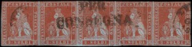 1851 - I emissione, i tre valori della serie: 5c n, 1851