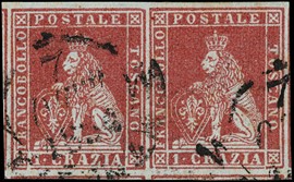 1851 - 1cr carminio chiaro su grigio, coppia con a, 1851