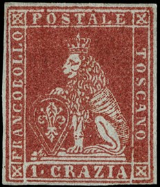 1851 - 1cr carminio chiaro su carta grigia e 2cr a, 1851