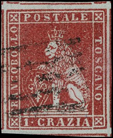 1851 - 1cr carminio chiaro su carta grigia, da 'LI, 1851