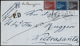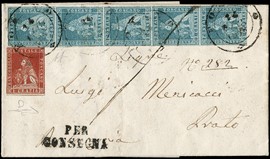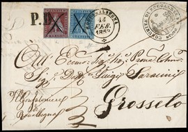 1850 - Lettera non affrancata da 'VEROLANOVA 1 GIU.' 1850 (cor. azzurro) a Pisa, tassata in arrivo '6' crazie. [..]