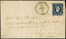 1851 - 20c azzurro scuro I tir., annullato a penna da 'SOSPELLO 19 FEB 51' (DC rosetta - Nizza) per Nizza Marittima. [..]