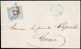 1850 - Poste Federali, Rayon I, 5rp azzurro e rosso, da 'GENEVE 21 AOUT 53' per citta'. Eccezionale qualita' (Zumstein [..]