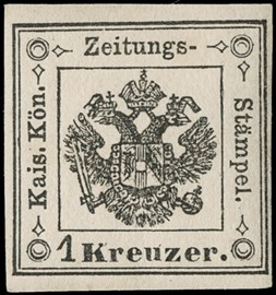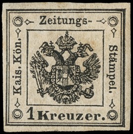 1858 - 1kr nero grigio con ampi margini su 'Il cor, 1858