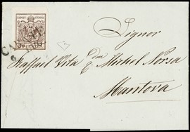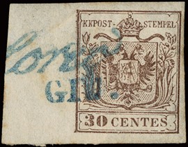 1850 - 30c bruno I tipo I tir. BdF da 'CARATE 6 LUG' 1850 (SD) a Mantova. CF E.Diena (Sassone 7b+pt.13 - Euro [..]